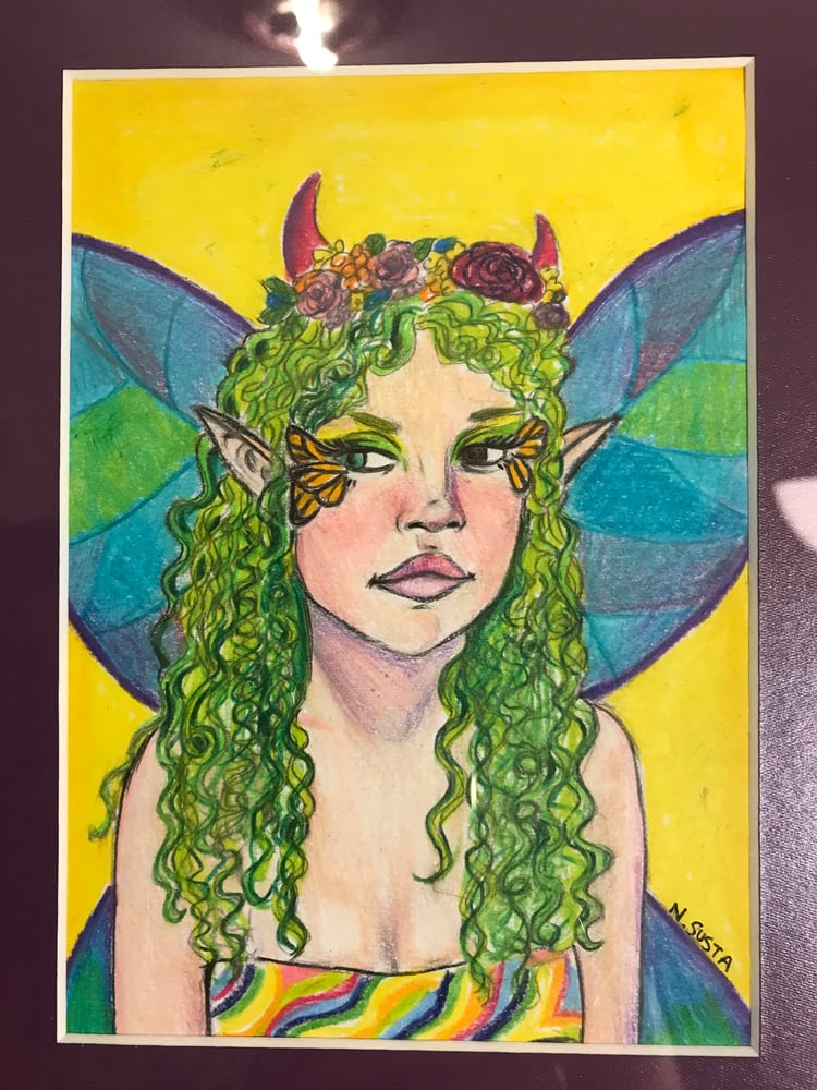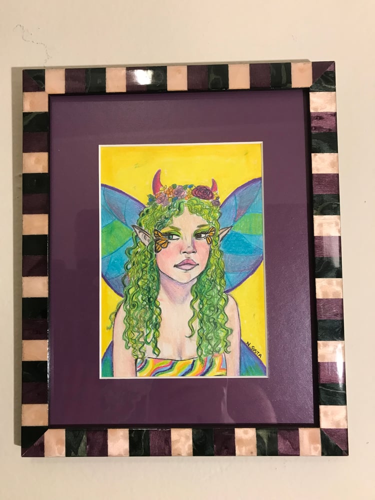 Colored pencil Self portrait 5x7 matted and framed to 8x10